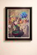 This unique framed art print set features two beautifully detailed pieces with a vintage-inspired, moody aesthetic—perfect for adding character to any space. One showcases a whimsical, slightly surreal bee resting among soft florals, while the other blends a classic still-life bouquet with an unexpected, bold artistic twist. Together, they create a striking and conversation-worthy pairing.