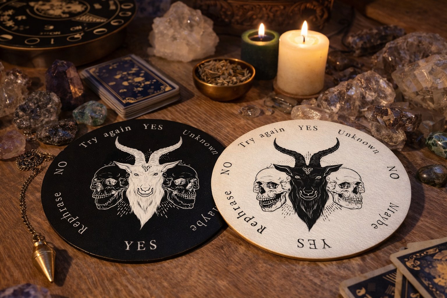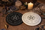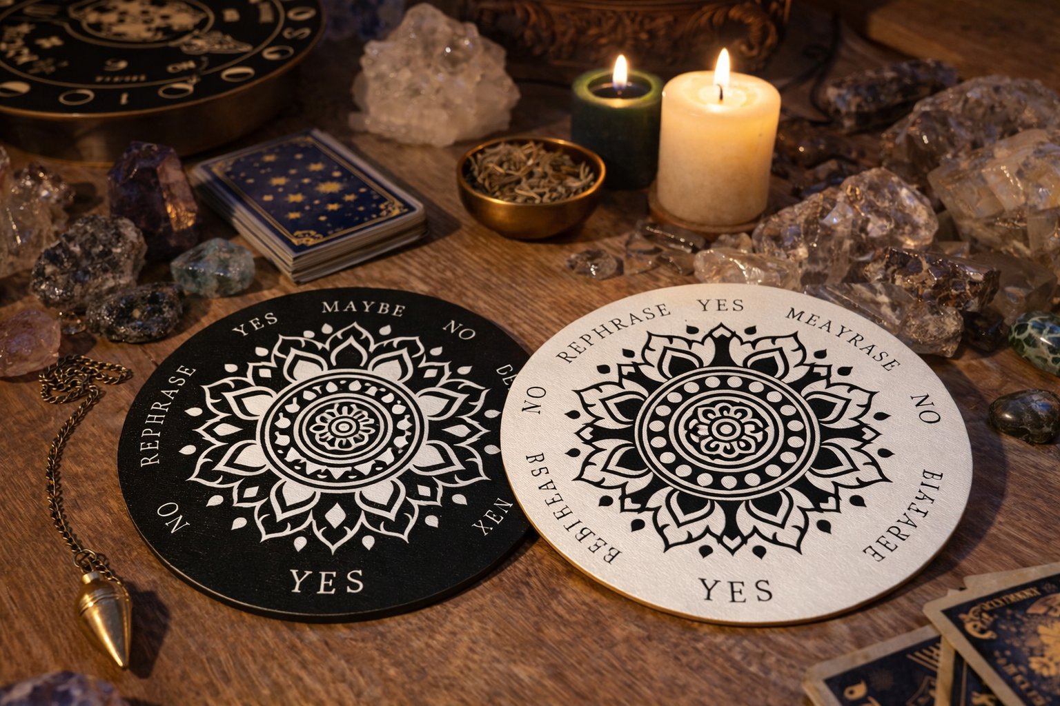 Unlock your intuition with these beautifully crafted dual-sided pendulum boards, designed for both beginners and experienced diviners alike. Each board features a unique design and offers two styles in one—a striking black side and a contrasting white side—allowing you to choose the energy and aesthetic that resonates most with your practice.