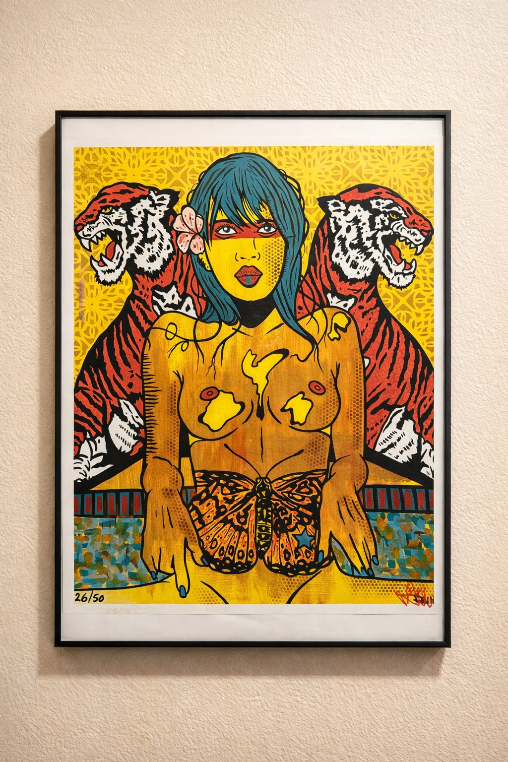 This print was purchased at the Dirty Show in Detroit a couple of years ago—an event known for showcasing raw, expressive, and boundary-pushing art.