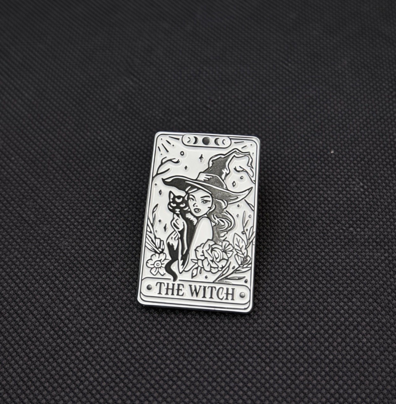 Embrace your mystical side with this enchanting witch tarot-style enamel pin. Featuring a witch and her loyal black cat beneath the phases of the moon, this piece captures the magic of intuition, nature, and the unseen.